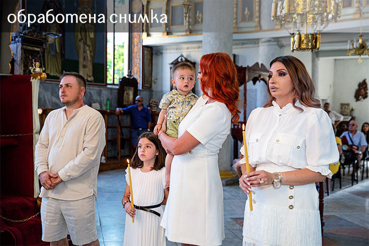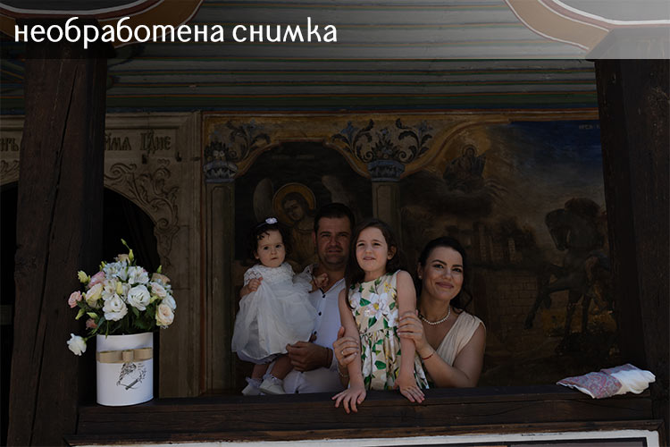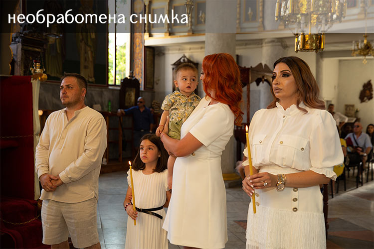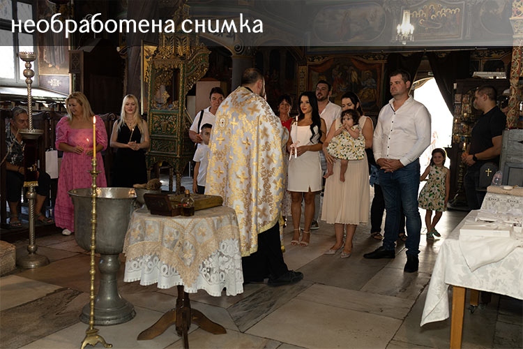 След края на ритуала идва време за фотозаснемане на новопокръстеното дете със семейство, кръстници и гости на празника пред олтара в църквата или в двора към нея. Понякога правя обща снимка с всички гости, ако пространството и обстоятелствата позволяват създаването ѝ. Всичко това е актуално за семействата, които са избрали вариант 1 за фотозаснемане на кръщене в Пловдив. Вижте 4-те варианта за фотозаснемане.