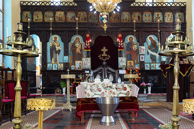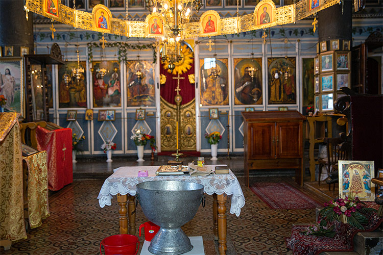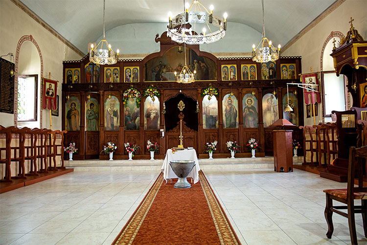 разстояние. Храмът не е от най-просторните и светли, но това не