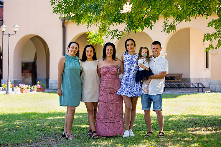 семейство и гости на празника. За фото заснемане на Кръщене в село