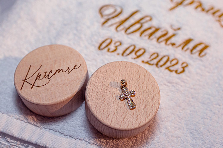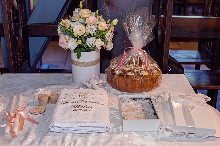 Какво Ви е необходимо за ритуала Свето Кръщение? Голяма хавлия, която може да бъде избродирана с името на Кръщелника. Сапун, който е необходим за самия ритуал. Голяма свещ, която Кръстника или Кръстницата държи от името на детето. Шишенце пълно с олио или зехтин (миро). Шишенце за светена вода, след ритуала вие или отецът отсипва от светената вода в шишенцето и си го запазвате. Кутийка за косичка, в която да съхраните кичура коса, който се отрязва по време на ритуала. Кутийка за кръстчето, което се освещава и може веднага да бъде сложено на детето. Пита за почерпка след ритуала. Бурканче с мед, в което ще е удобно след ритуала гостите, да си топнат залче от питата. Папка за Кръщелно свидетелство.